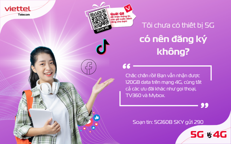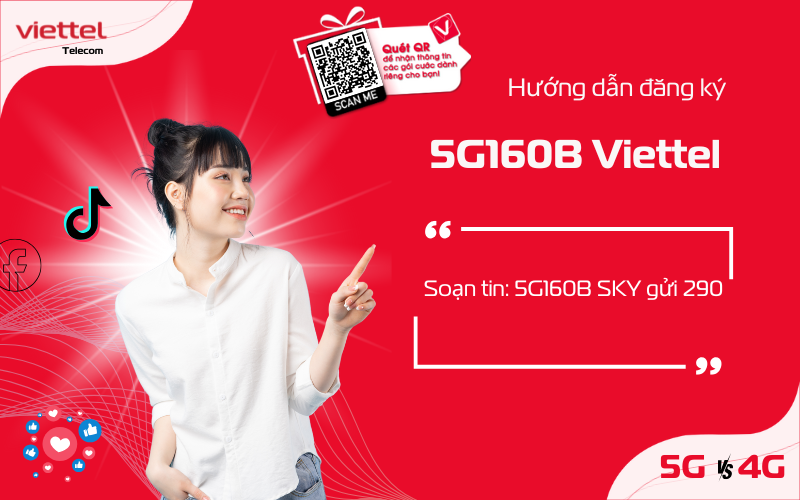 Hãy đăng ký ngay hôm nay để không bỏ lỡ cơ hội tận hưởng internet siêu nhanh, liên lạc thoải mái và giải trí đỉnh cao! Chỉ cần soạn 5G160B SKY gửi 290, hoặc truy cập ứng dụng My Viettel để kích hoạt gói cước.