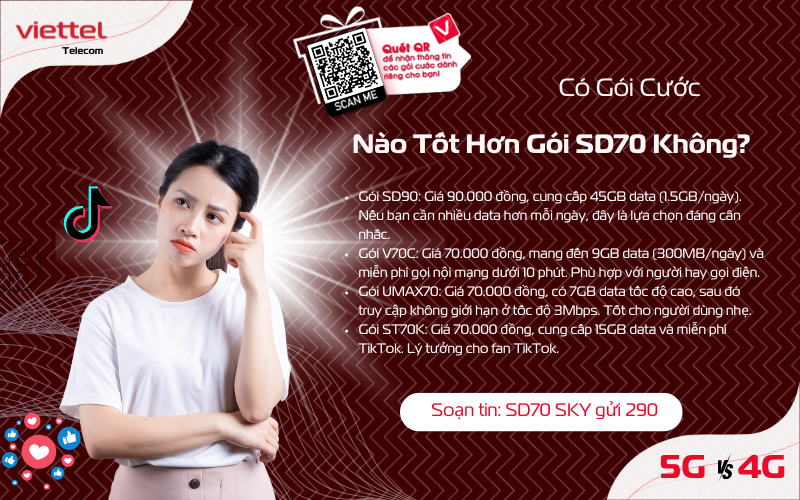Gói cước Viettel 70k tháng như SD70 có gì đặc biệt? Dưới đây là thông tin chi tiết để bạn nắm rõ: