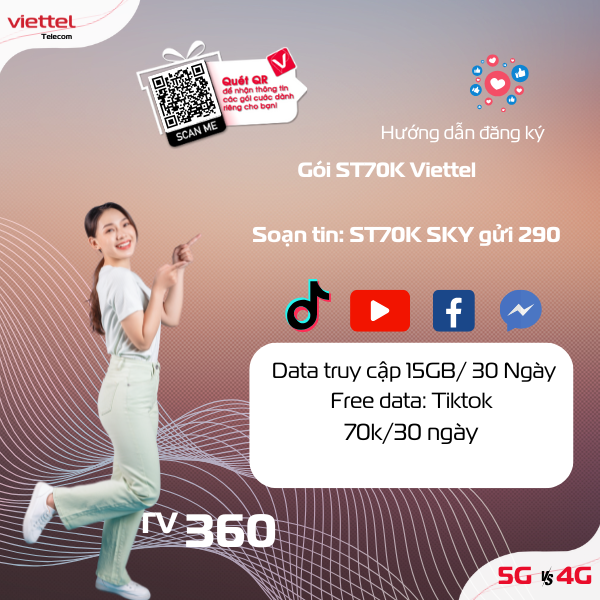 | ST70K | 70.000 | 500MB/ngày (15GB) | Tất cả | Free TikTok | Giải trí nhẹ |